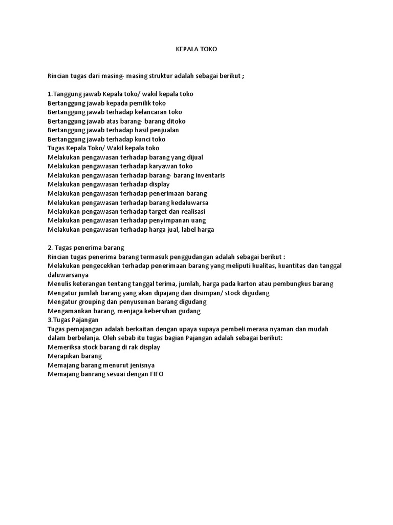 Berikut beberapa tugas pokoknya. Menyiapkan struk penjualan form transaksi alat tulis dan mengecek telpon. Cash Office Head Kepala Kantor Kas.